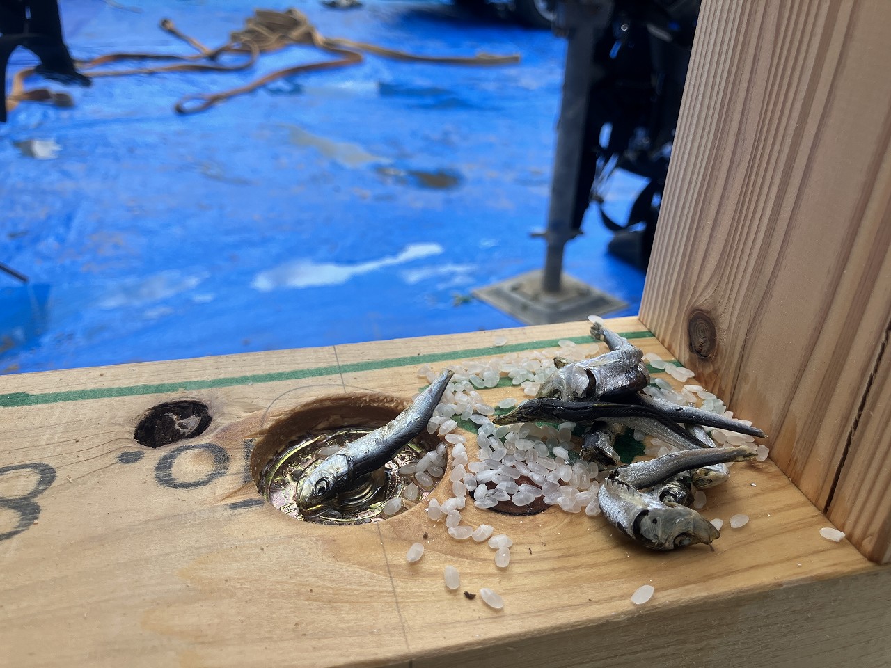 お米、塩、いりこをお供えしてお神酒を注いでいきます。