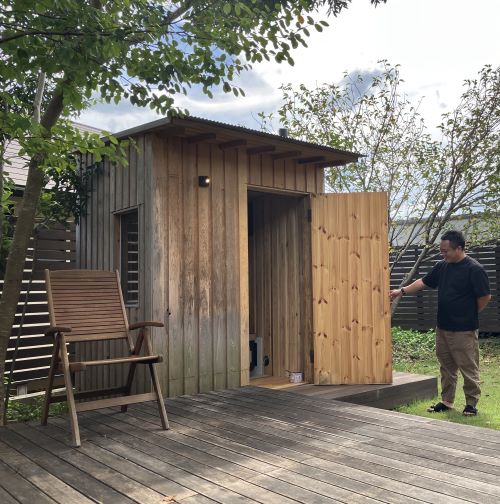 サウナが大好きなお客様と私は、おうちからウッドデッキでつながる小さなサウナ小屋にロマンを感じてしまいました。