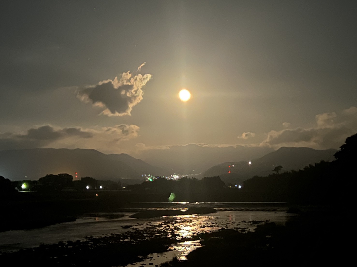 △中秋の名月の2日後がちょうど川の上に大きな月が見られてきれいでした。