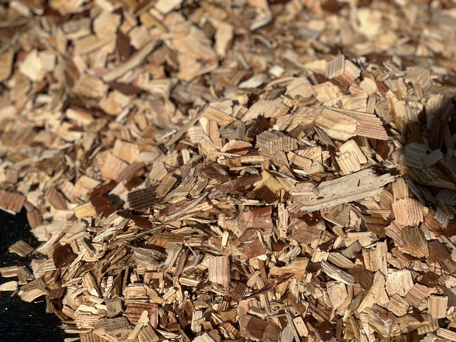 杉・ヒノキ・広葉樹が混ざった皮つきのウッドチップを購入しました。ヒノキがとても良い香り。