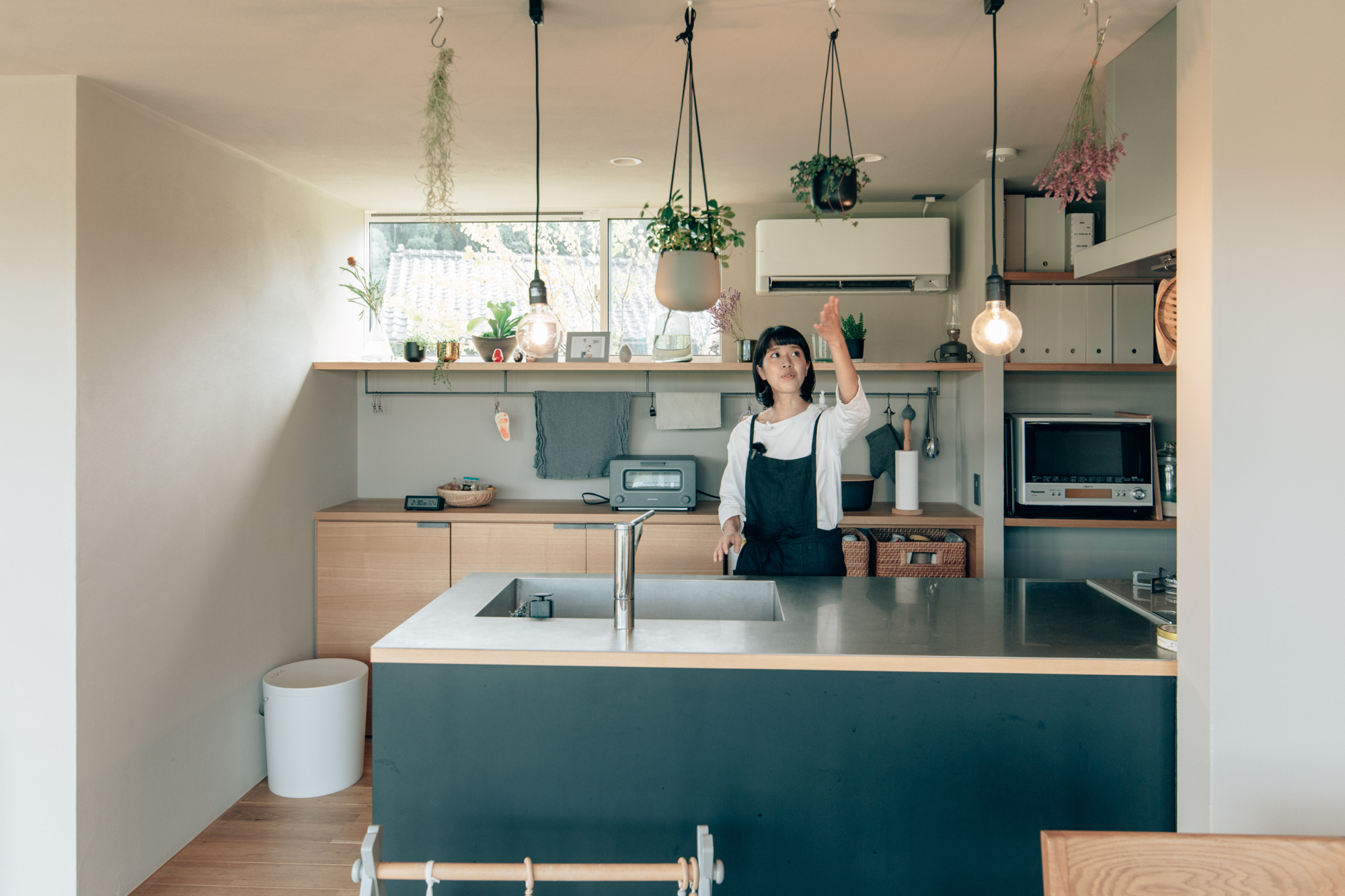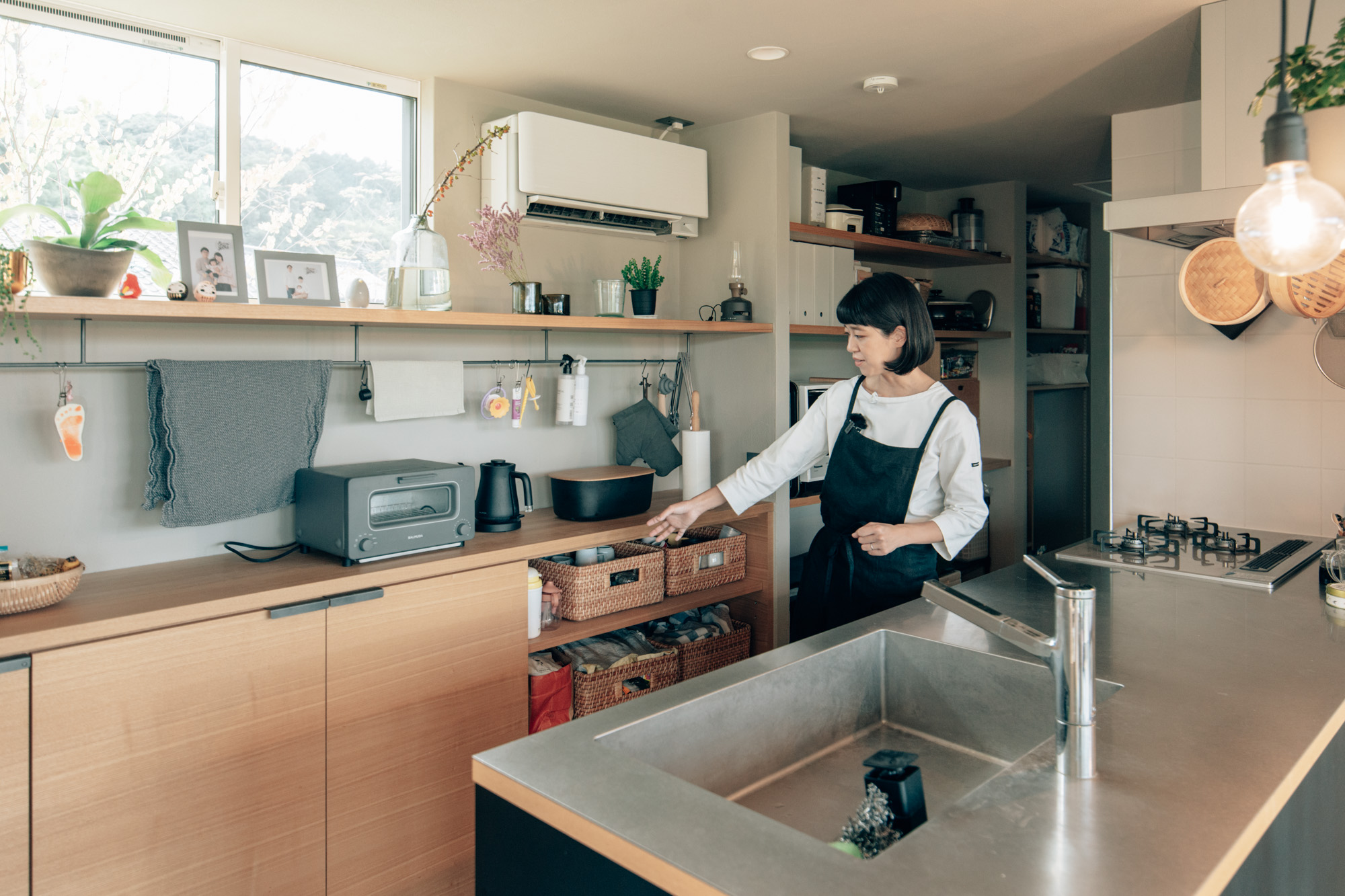 ちなみに我が家のキッチンは造作の対面キッチン。片付いている時もごちゃついている時も全て包み隠さずさらけ出されるオープンでフラットな造りです。丸見えなのはタイミング次第で良し悪しありますが、我が家のように子供とキッチンに立ったり複数名でわいわいキッチンを囲むイメージの方にはとてもおすすめです。反対側からの作業もしやすいので子供のフォローをしたり、写真で日常の素敵な瞬間を収めるのにも役立っています。