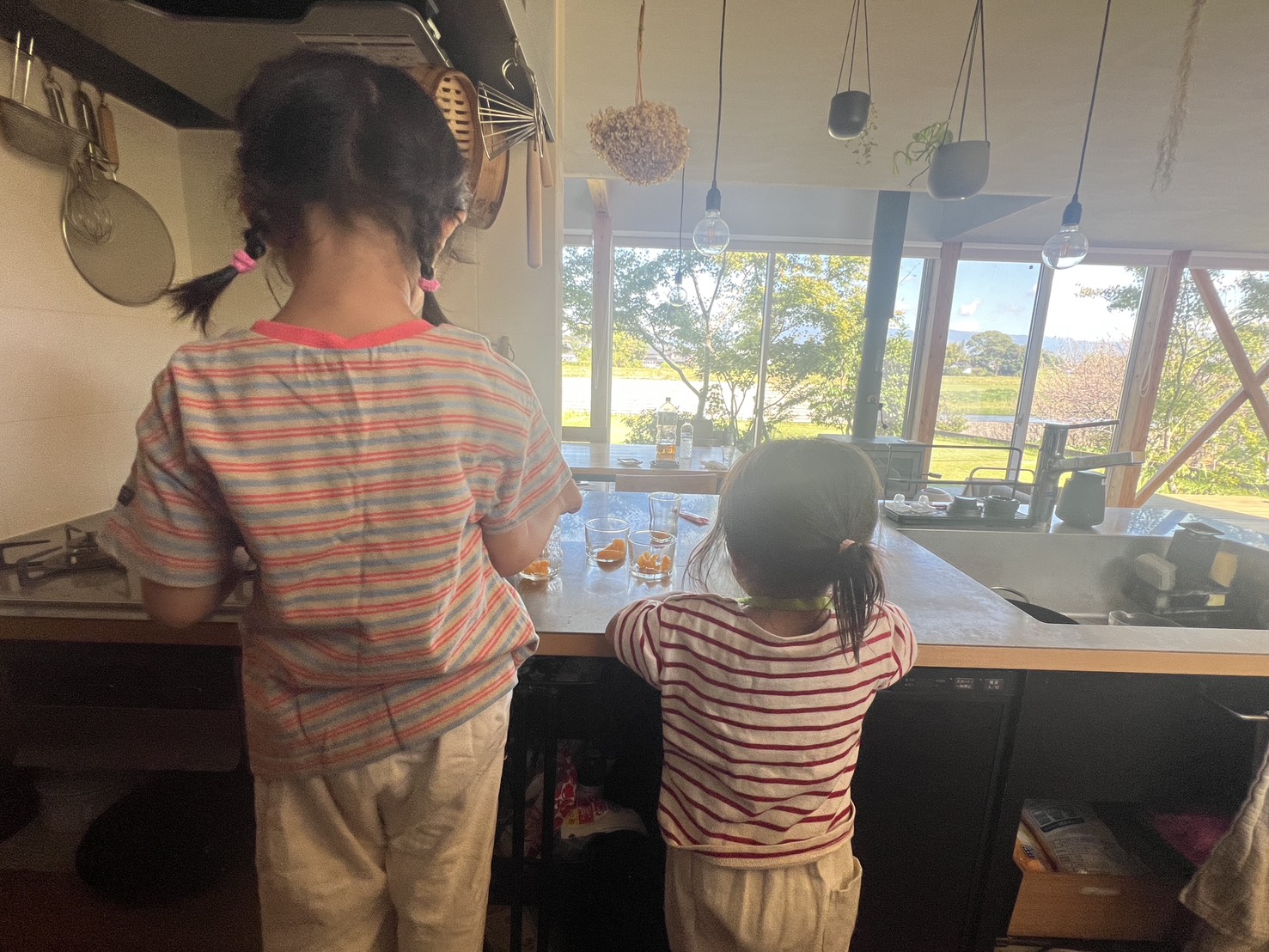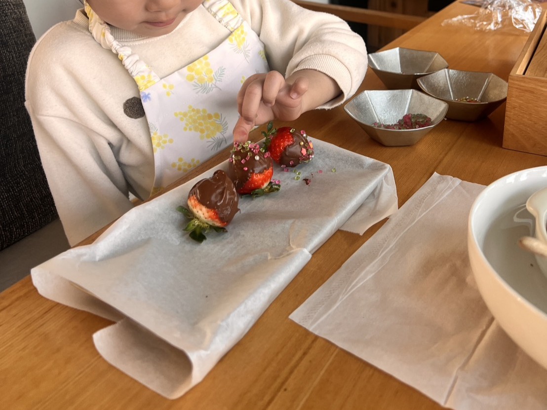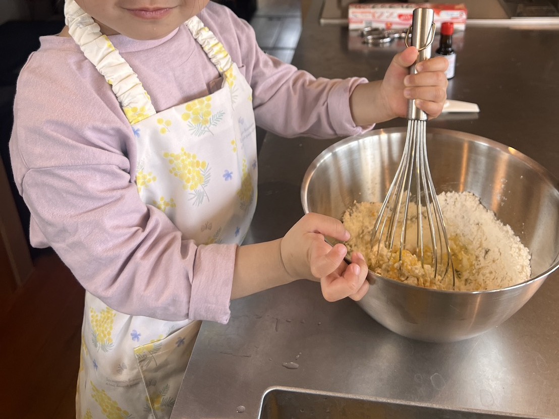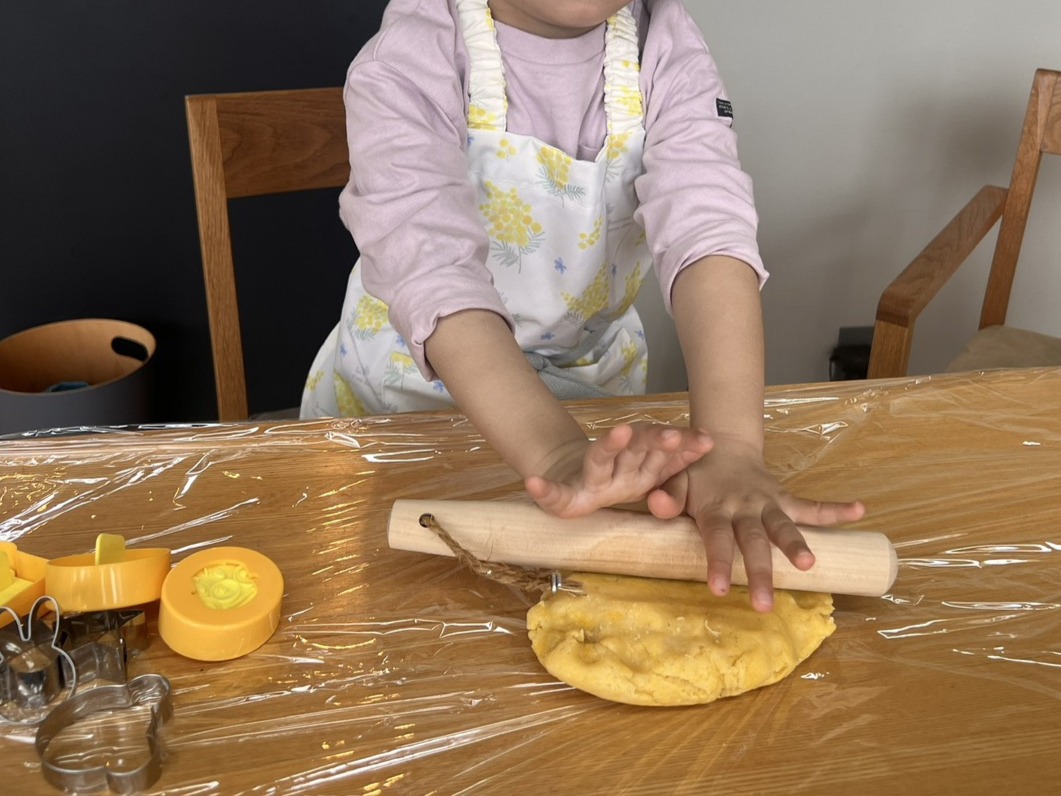 我が家の女児2人、特に年中さんの長女はキッチンで大人のまねごとをよくしたがります。生まれてから3歳手前までコロナ禍の自粛モードで外出しにくい日々を送ったこともあり、よくキッチンでおうち時間を過ごしてきました。その頃のことも影響しているのかもしれません。たまにクッキーをつくったり、バレンタインは子供でも作れるイチゴチョコが我が家の定番。お芋の季節になったら鬼饅頭をよく作っています。