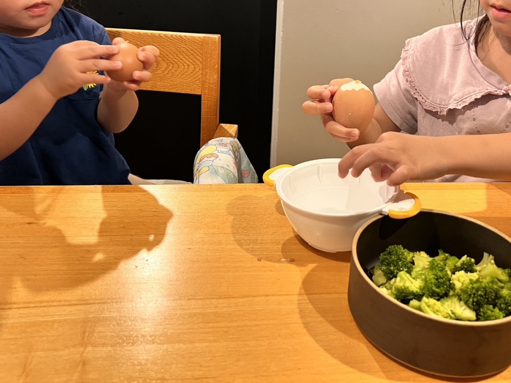 仕事後の怒涛のバタバタタイムではなかなかさせてあげられる事は少ないですが、何かやりたいと訴えた時はゆで卵のカラ剥きがその場を平和にしてくれます。自分でやった方が早いことの方が多いですが、将来的にお料理好きな娘に育ってくれたら夕ご飯作ってくれるかも・・・なんて期待もあったりします。