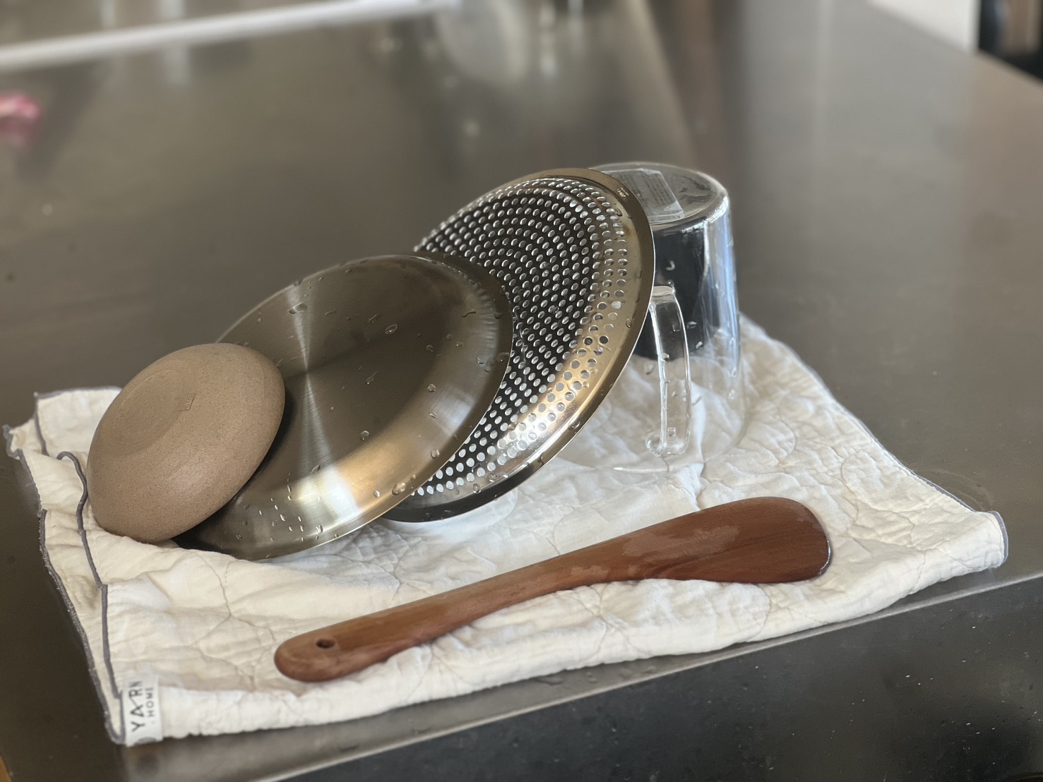 以前hotoliで購入したconteさんのまかない平ザルが缶詰のシロップをきるのに活躍し、その後まかない丸バットの上に置いて作業をしたのがとても使い勝手が良かったです。ちなみにまかないボウル大・中も愛用していますがとても使いやすく、見た目のすっきりシンプルな感じも気に入っています。